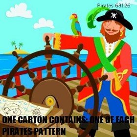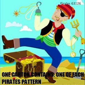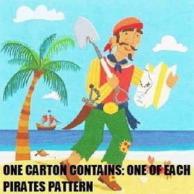 - One carton. Includes four 16" x 16" tiles - One of each PIRATE pattern